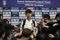 「北朝鮮の選手はかなり激しくプレーした。ひどい罵りもあった」。10月17日、北朝鮮から仁川空港に当直し、記者の質問に答えるサッカー韓国代表・孫興民(ソン・フンミン)選手(写真:AP/アフロ)