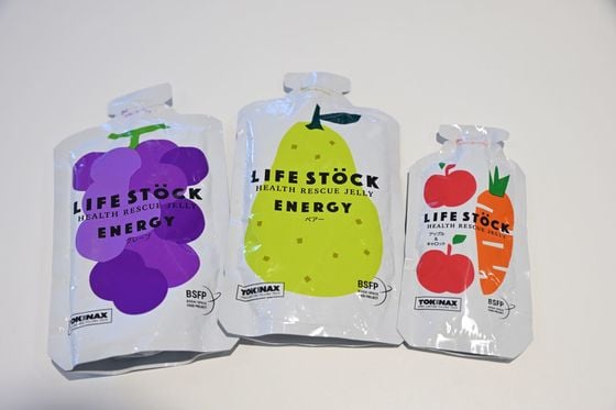 現在、BSF1.0は2種類。「LIFE STOCK」エナジータイプとバランスタイプだ。エナジータイプは100gで200kcal(おにぎり約1個分)あり、結構お腹がいっぱいに。