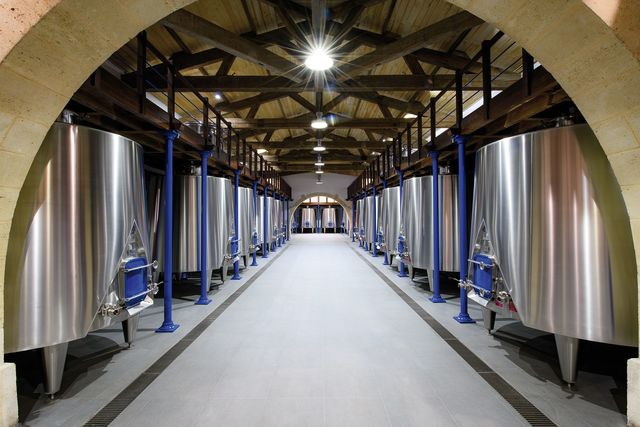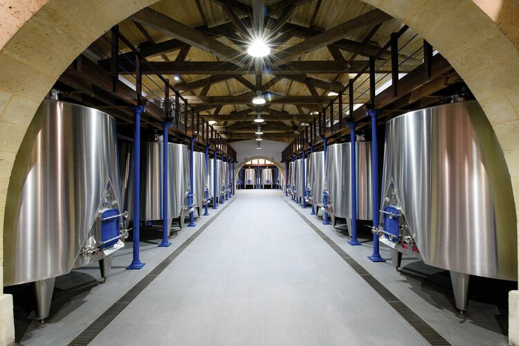 シャトーカノンのステンレス醸造タンク。設備への投資がブドウに真価を発揮させる