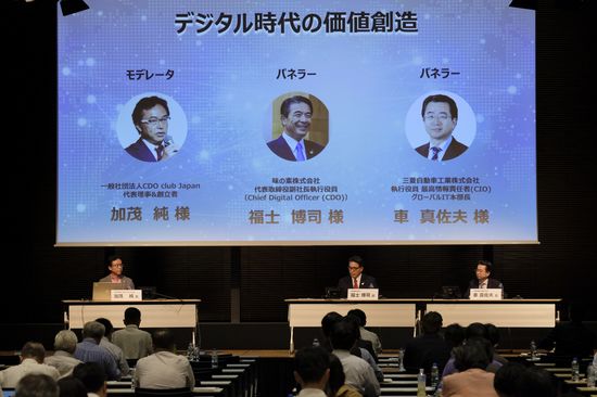 登壇者は、いずれも歴史と実績を備えるグローバルカンパニーでCDOとしての役割を担う人物。独自に掲げたASV(Ajinomoto Shared Value)向上という新たな経営指針に向かって、副社長の立場からDXを推進している味の素の福士 博司氏と、CASE(Connected、Autonomous、Shared/Service、Electric)時代に突入したモビリティ業界で、ASEANおよび日本市場おけるイノベーションを足掛かりにしようとしている三菱自動車の車 真佐夫氏だ。