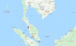 ペナン島水上の家で扇風機に当たる猫とおばあさん