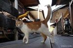 修理工場の裏手の道にも猫たちがいました。修理工場の勝手口から出入りして、ご飯をもらっているようです。