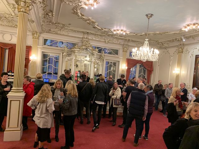 バー・コーナーで開演を待つ人たちは年齢層高め