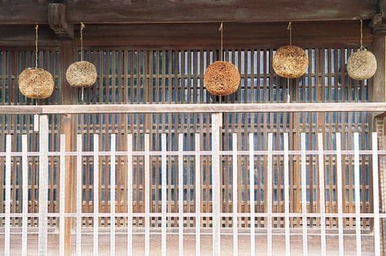 古い町並みをぶらぶらしていると、趣のある建物の軒先に、直径40〜70cm程度のきれいな球体が吊るされていることがある。日本酒が好きな人ならご存知かと思うが、その球体は日本酒の醸造所にある「杉玉(すぎだま)」もしくは「酒林(さかばやし)」とよばれるものだ。