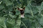 レストラン「猫」を出て、バスターミナルまでの道すがら、キャベツ畑でシャム柄の猫に出会いました。