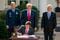 左からジョン・W・レイモンド空軍大将、トランプ大統領、ペンス副大統領。署名しているのはマーク・エスパー国防長官(写真:ホワイトハウス)