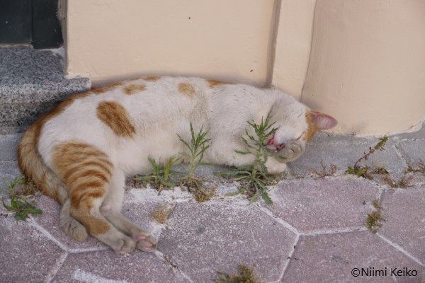 コス島には、行き倒れているような猫がたくさんいました。猫好きだというCDショップの店主に、「猫たちがこんなに無防備なのは、幸せだからでしょうね」と話しかけると、「猫はただレイジーな(勤勉でない)だけ。この島のほとんどの人やわたしと同じようにね」。なんと返事していいか困って、笑うことしかできませんでした。