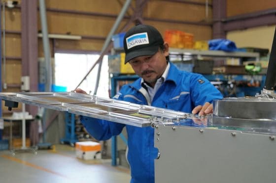 そもそもオガワ機工は、FA(Factory Automation)機械を作る会社。従業員は25人。重工業からお菓子屋さんまで、さまざまな「物を運ぶ」会社である。工場内には「便利をつくる。ひとつから考える」という会社のスローガンが掲げられている。