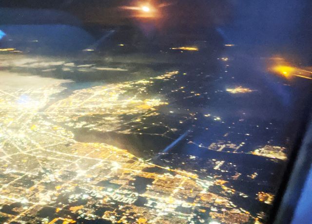 ハドソン川を目印に高度を下げると眼下には郊外からマンハッタンにかけての夜景がミルキーウェイのようにきらめく。真ん中を横切る川の上がニュージャージー州、下がマンハッタンだ