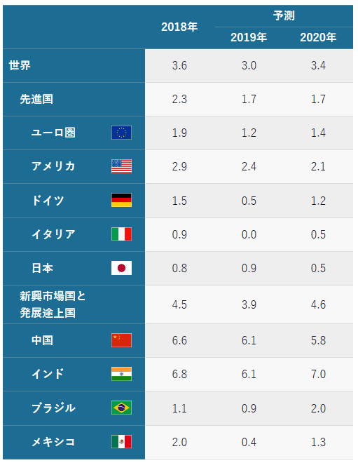 出所:2019年10月15日IMF発表『最新の「世界経済見通し(WEO)」による予測』