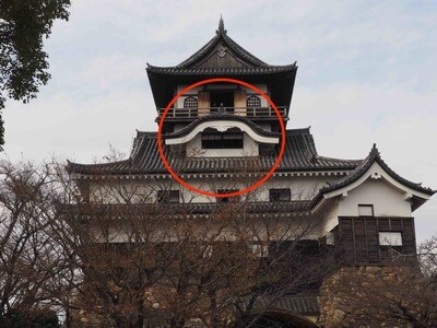 犬山城の天守を正面から見ると、何となく小顔な感じがします。これは、御殿のような大きな入母屋の建物の上に、小さな物見櫓を載せて作ったからです。このタイプを、望楼型(ぼうろうがた)天守といいます。望楼型は、屋根を重ねて建てた天守です。