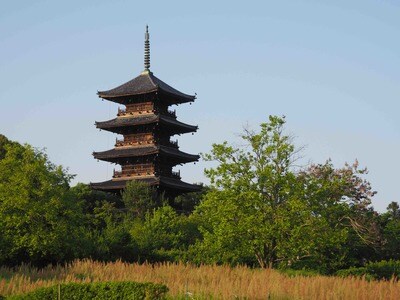 写真4:備中国分寺(岡山県)の五重塔。外見は5重だが内部は吹き抜けで、天守とは構造がまるで違う。高欄・廻縁を装飾に使うのは、寺院建築がヒントのようだ。撮影/西股 総生