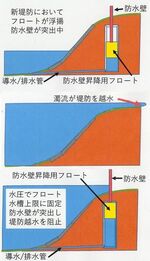 増水時だけ防水壁がせり上がり、景観も損なわない