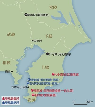 ここに小弓公方・足利義明が誕生した。古河と小弓の公方が睨み合い、関東は二つに割れていく。里見一族は小弓公方についた。