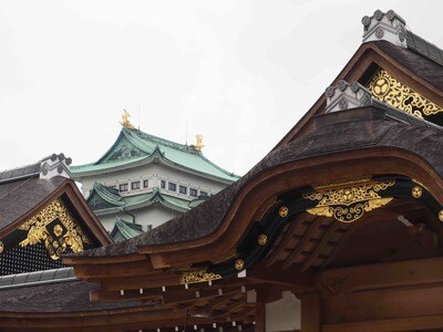 写真3:名古屋城の本丸御殿と天守。両方とも空襲で焼失したが、戦後になってコンクリートで天守が、最近になって木造で御殿が復元された。ただし、名古屋城の本丸御殿は将軍の宿泊用で、城主の御殿は二ノ丸にあった。この場合、城主の権威を示す建物は? 撮影/西股 総生