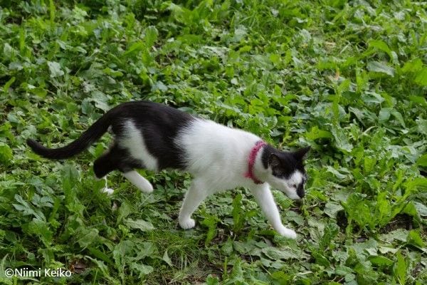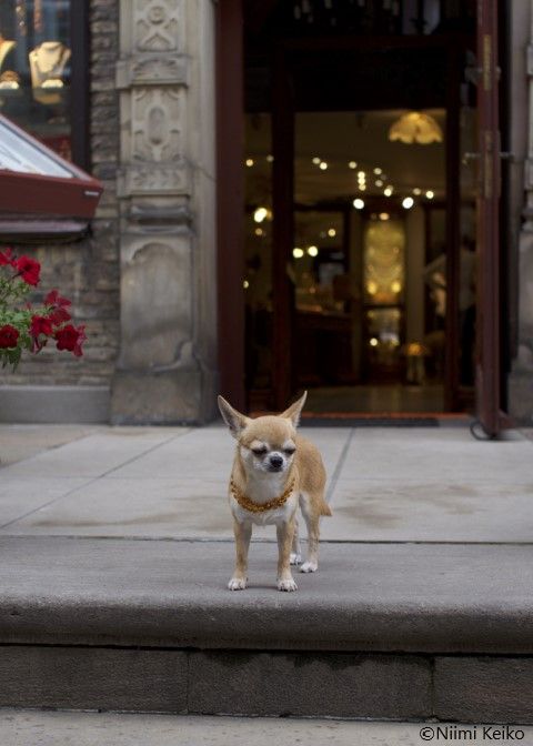 琥珀専門店の玄関にいたチワワくん。なんと、琥珀の首飾りをしていました。