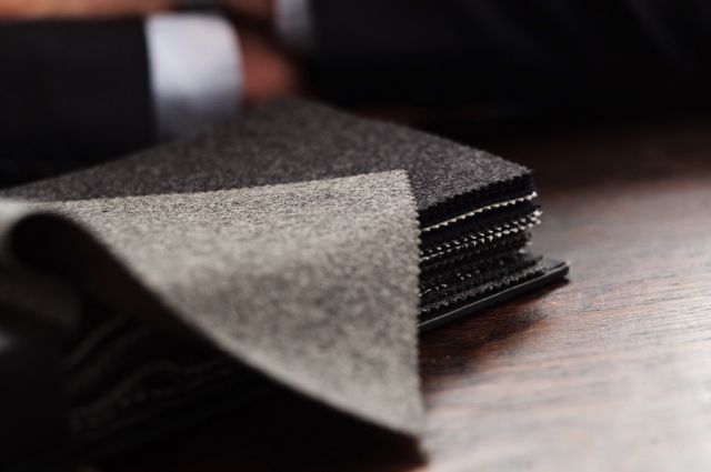 こちらが〝FOX〟のフランネル生地。やわらかさの中に芯があって、長年着込むと味が出る。スーツ好きなら絶対に避けては通れない、名品生地だ