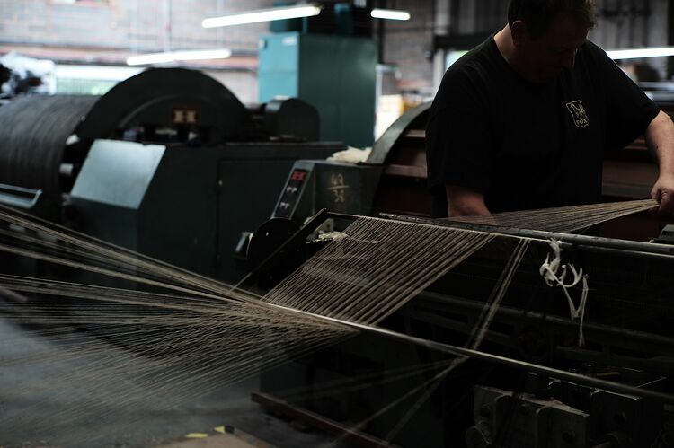 アーカイブルームから徒歩数分。到着したのが〝FOX〟の工場。英語では「ミル」と呼ばれる。その規模は意外にも小さく、工員はだいたい30名程度といったところか? スーツ好きにとっては〝FOX〟は相当なビッグネームだから、この意外にも小さなスケールには正直言って驚かされた。