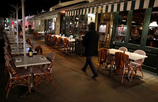 新型コロナウイルスの感染拡大の影響で客足が途絶えた英国・ロンドンのレストラン(2020年3月18日、写真:ロイター/アフロ)