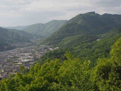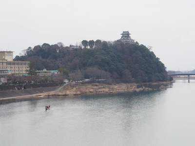 写真1:犬山城は木曽川に面した丘に占地している。川に面した方は崖になっていて、こちらから攻めるのは難しそうだ。