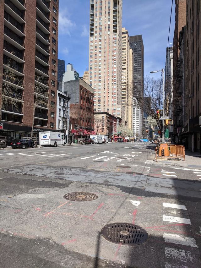 私の住む三番街の午後。普段はクルマのクラクションが鳴りっぱなしだが、クルマも少なく人影もほとんどなく静まり返っている