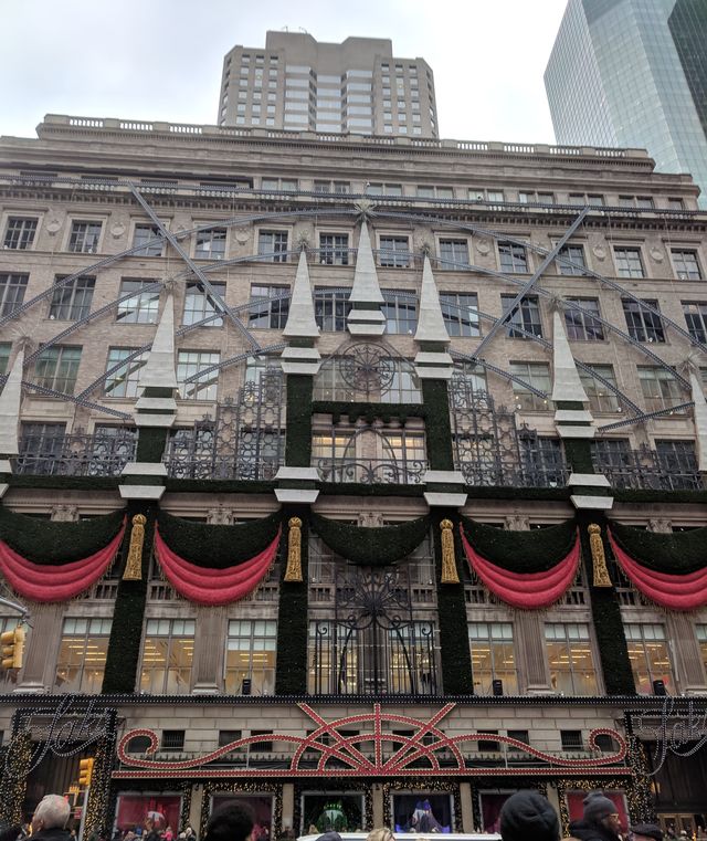 「サックスフィフスアヴェニュー」は建物正面全体がクリスマスのイルミネーションで飾られ、ロックフェラーセンタ―のクリスマスツリーと一体になる