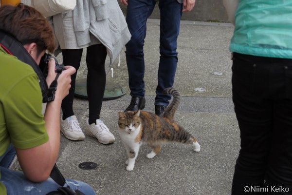 休日は混雑するので、平日の午前中に行ったのですが、思ったよりも多くの人が訪れていました。人々に囲まれて猫たちはうれしそうでした。