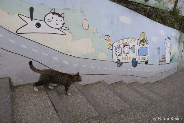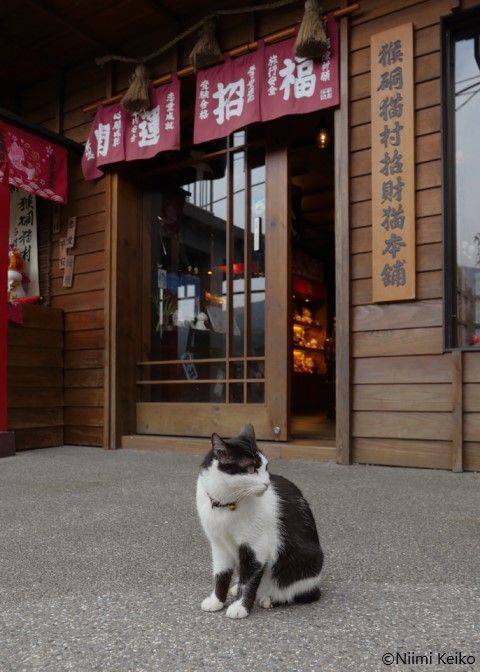 カフェや休憩所、土産物店などが10軒ほどあります。ほとんどの店で猫を飼っています。