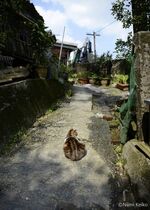 猫の後ろに見えるのが、侯硐駅から猫村へ続く鉄橋です。