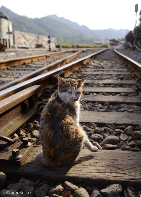 十分駅から老街(古い通り)へと向かう途中、線路上で猫が日向ぼっこをしていました。列車は1時間に1本ぐらいの間隔なのでゆっくりできます。