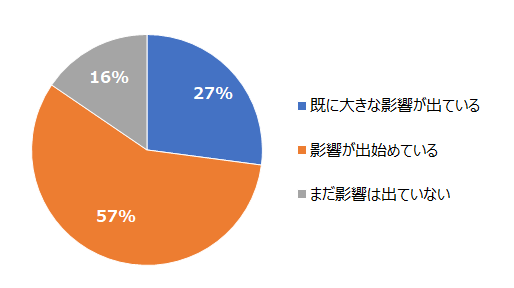既に影響が出ている企業は8割、大企業・中堅企業では9割前後