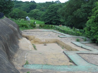 写真1:東京都町田市にある小山田遺跡。多摩ニュータウン開発の際に見つかった遺跡が、史跡公園として整備されている。平安末〜鎌倉時代の武士たちは、このような場所に屋敷を構えて住んでおり、個別には城を築かなかった。上浜田遺跡も同様の屋敷跡。