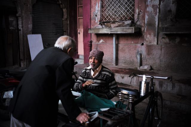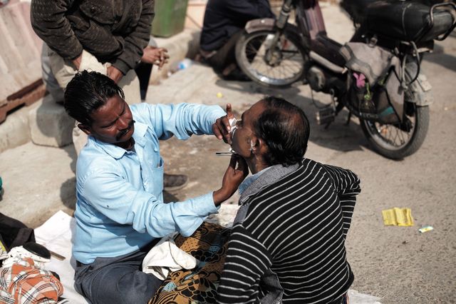 日本人には考えられない光景だが、インドでは青空床屋も多い。さすがに僕はヒゲを剃ってもらう気にはなれなかったが