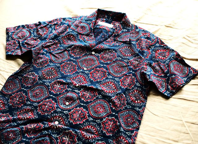 シンガポールの人気テーラー&ファッションブランド〝Kevin Seah〟が今季つくった、既製のオープンカラーシャツ。手彫りの木版を使い、生地に一点一点インクを押し当てて染めていく、インドの伝統工芸「ブロックプリント」によってつくられている。日本ではONLINE SHOP「アフターアワーズ」で購入可能https://ahours.jp