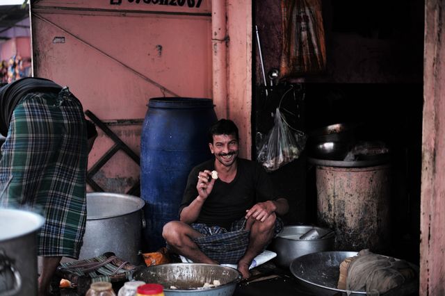 一杯10円のチャイをつくるひと。晩ご飯のおかずを揚げるひと。鍋などの金属類を加工するひと。洋服を縫うひと……。ここでは生活に必要なすべてのものがいまだにひとの手で、この土地の素材をつかって、しかも道端でつくられている。その混沌ぶりは較べものにならないが、きっと昭和30年代くらいの日本の下町も、こういった風景だったのだろうな、と想像させられる。