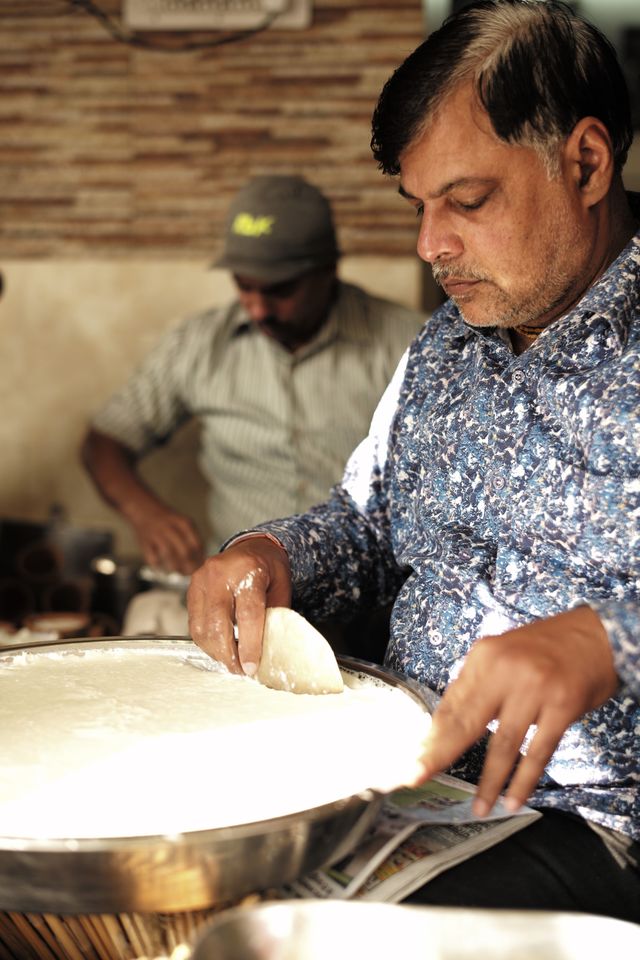 こちらは日本でもおなじみのラッシーの屋台。とても簡素な焼き物のカップで提供されるのだが、これは飲み終わったらそのまま土に還される。この昔ながらのスタイルは、プラスチックごみが社会問題化している現代においては、最先端のサステナビリティでもある