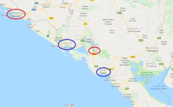 バルカン半島の東側に位置し、アドリア海に面するモンテネグロ(Googleマップ)