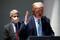 ホワイトハウスで記者会見するドナルド・トランプ大統領とアンソニー・ファウチ博士(後ろ、5月15日、写真:AP/アフロ)