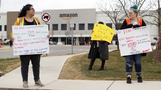アマゾンでは、物流施設における感染防止策などが不十分だとして一部の従業員が抗議している。今年3月30日には、ニューヨーク・スタテン島にあるアマゾンの物流施設で50人以上の従業員がストライキを行った。施設内で従業員に新型コロナウイルスの陽性が確認されたことを受けたもので、彼らは、安全対策の不十分さやリスクに対する賃金の低さを訴えている。