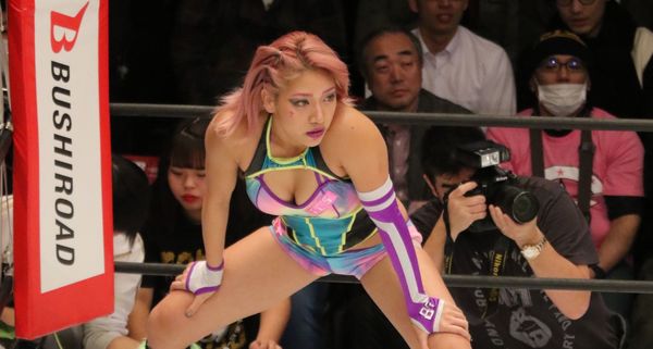 昨年12月、リングの上で活躍する木村花さん(写真:平工幸雄/アフロ)