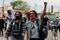 米ミシガン州デトロイトで、ミネアポリスの警察がジョージ・フロイド氏を拘束して死亡させた事件に抗議するデモ隊(2020年6月1日、写真:ロイター/アフロ)