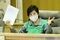5月25日、東京都の新型コロナウイルス感染症対策本部会議での小池百合子都知事(写真:Pasya/アフロ)