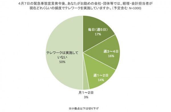 「毎日テレワークを実施している」経理担当者はわずか17%