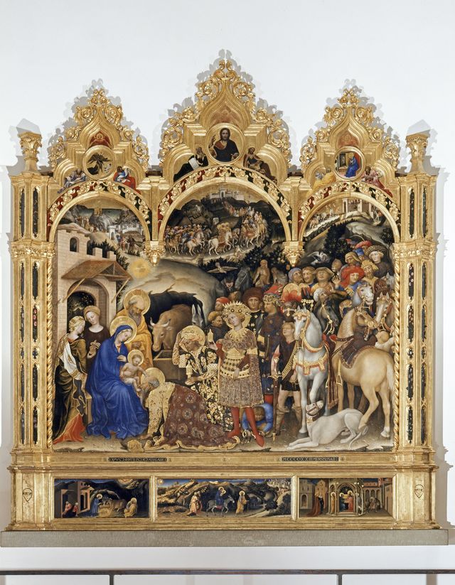 ジェンティーレ・ダ・ファブリアーノ『東方の三賢者の礼拝』 302×282㎝ 制作年/1423年 所蔵/ウフィツィ美術館 種類/油彩©︎Mondadori Portfolio/getty images