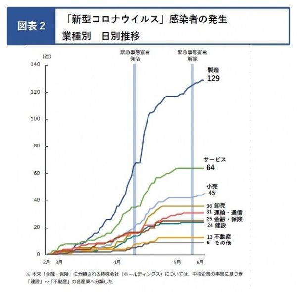 「製造業」や「サービス業」、「小売業」など各業種で感染ペースは鈍化