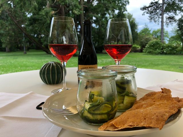 美しいガーデンを見ながらのアペリティーボ。ミオ・マリートは、アペリティーボタイムをオン・オフのスイッチとしてとても大切にしています。ここでのアペリティーボはまた格別です。モデナはランブルスコ(発砲赤ワイン)の産地。で、ランブルスコと自家菜園で収穫したズッキーニをいただきました。目にするものすべてにおいて、モデナへのパッショーネを感じたところでミオ・マリートは、「パッショーネのレベルを上げるため」について語りはじめました。
