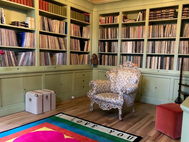 圧巻のヴィンテージレコード・コレクション! なんと蓄音機もあり、ゲストは自由に聴くことができるのです。