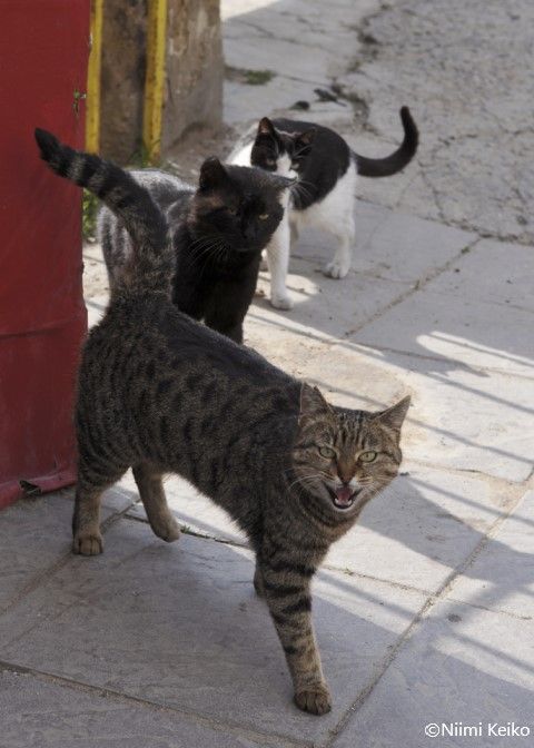こちらの猫たちは、3匹がいっしょに行動していました。先頭の猫が、しきりに話しかけてきたのですが、何を言いたかったのかわからずじまいでした。