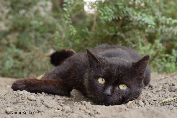 街の中心にある公園の植え込み。植栽前で土がむき出しになっていました。ここがよほど気に入ったのか、土に体を押し付けて、ゴロンゴロン。せっかくの漆黒の毛並みが、泥まみれ、ほこりまみれになってしまいました。