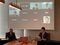 33階でエレベーターを降り会場に入ると、席に座っていたのは株主総会の議長を務める一守靖取締役と議事を進行する林秀樹執行役員の二人だけ。背後のスクリーンにはZOOMで総会に参加する4人の株主の画像が映し出されている。4人ともベンチャーキャピタルの担当者で、いずれも都内の自社オフィスからのリモート参加である。